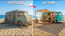 Elhagyott furgonból tengerparti bungaló