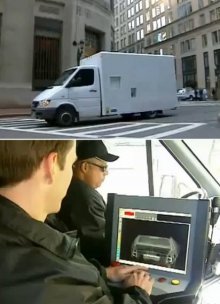 Egy röntgen járművel világítják át az utcán lévő autókat az Egyesült Államokban.