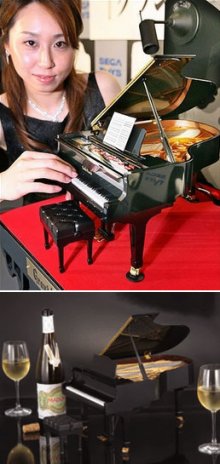 Ez a grand piano nem túl grandiózus, de elvileg lehet rajta játszani - már ha valakinek jó vékonyak az ujjai hozzá. :) Persze magától is játszik, 100 klasszikus, jazz és pop dal szerepel a memóriájában. 2007 áprilisától kapható (400$).