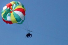 Ejtőernyős csacsi "repkedett" a strandolók fölött - szemtanúk beszámolója szerint a szerencsétlen állat nem tűrte jól a megpróbáltatást és folyamatosan ordított.