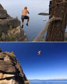 Mike Wilson négyes szaltója, egy kb. 30 méter magas sziklára elhelyezett "kötélhintáról".