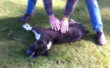 Életmentő szívmasszázs egy boxer kutyuson...
