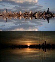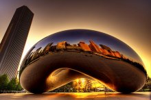 Fotók a chicagói Millenium Parkban található, az indiai származású Anish Kapoor alkototta 10 méter magas, 20 méter hosszú és 110 tonnás Cloud Gate (Felhő Kapu) névre keresztelt "krómbab"-ról.