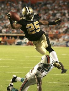 Reggie Bush (Running Back, New Orleans) touchdownja a Miami Dolphins ellen egy double reverse után..