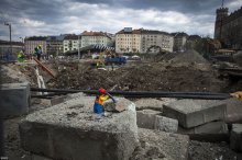 Keményen dolgozó kis emberek építik a Moszkva teret