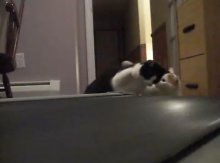 Lusta cica a futógépen... nem igazán akar futni. :)