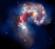 Galaxisok ütközése - a NASA-nak három teleszkóp segítségével sikerült csodálatos felvételeket készítenie két galaxisról, amelyek "éppen" összeütköznek, csakhogy ez a karambol már százmillió éve tart. A Csáp-galaxisok 62 millió fényévre vannak a Földtől, a kozmikus karambol százmillió éve kezdődött, és még ma sincs vége. Eközben számtalan csillag és fekete lyuk jött létre.