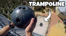 Tippeld meg, hogy mi történik ha 45 méter magasból egy bowling golyót ejtünk egy trambulinra!