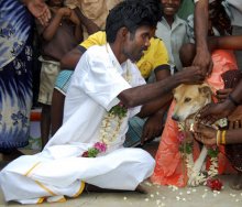 A dél-indiai Tamil Nadu állambeli 34 éves férfi, Szelvakumar 15 éve hívta ki maga ellen a sorsot azzal, hogy agyonütött két párzó kutyát. Néhány napra rá járásképtelenné vált, megromlott a hallása és a beszédkészsége. Az orvosok tanácstalanok voltak, de végül egy asztrológus rájött, hogy a megölt kutyák lelkei rontották meg a férfit, és a rontást csak úgy lehet levenni, ha a férfi feleségül vesz egy kutyát.