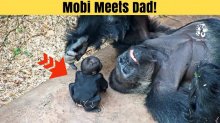 A kis gorilla először találkozik apukájával