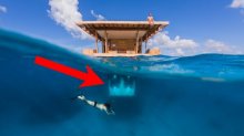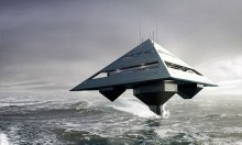 Tetrahedron - idegen űrhajó kinézetű luxus yacht, ami lebeg a tenger felett