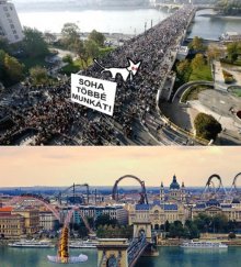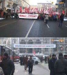 Óriási molinó hergelte fel a Miskolcról a Parlamenthez gyalogoló munkát, kenyeret követelőket. Bedühödtek, felmásztak.