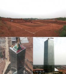 30 emeletes szálloda 15 nap alatt - a Broad Group kínai vállalat tavaly 15 emeletes hotelt épített egy hét alatt, most megdöntötte a rekordot.
