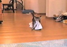 "Ügyes vagy cicus, ha végeztünk a padló portalanításával, akkor majd jöhet a szekrény teteje." :)