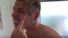 az itt lévő FB komment alapján már az első napon, mikor találkoztak) az arcára varratta újdonsült barátja nevét (aki nem mellesleg