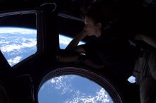 Tracy Caldwell Dyson űrhajós letekint a Földre 350 km magasból.